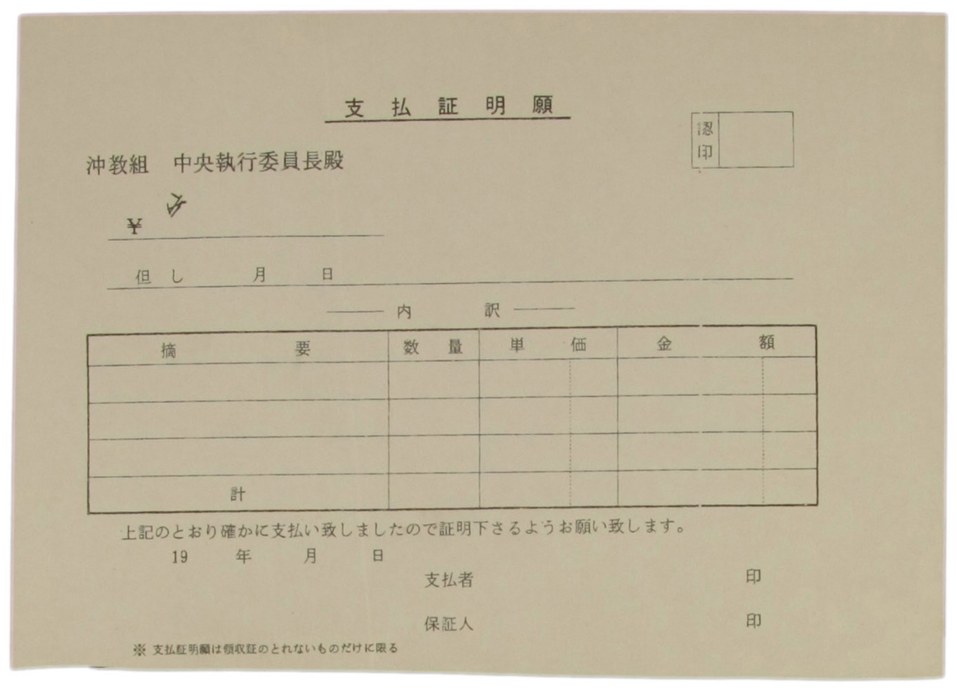 > 支払証明願