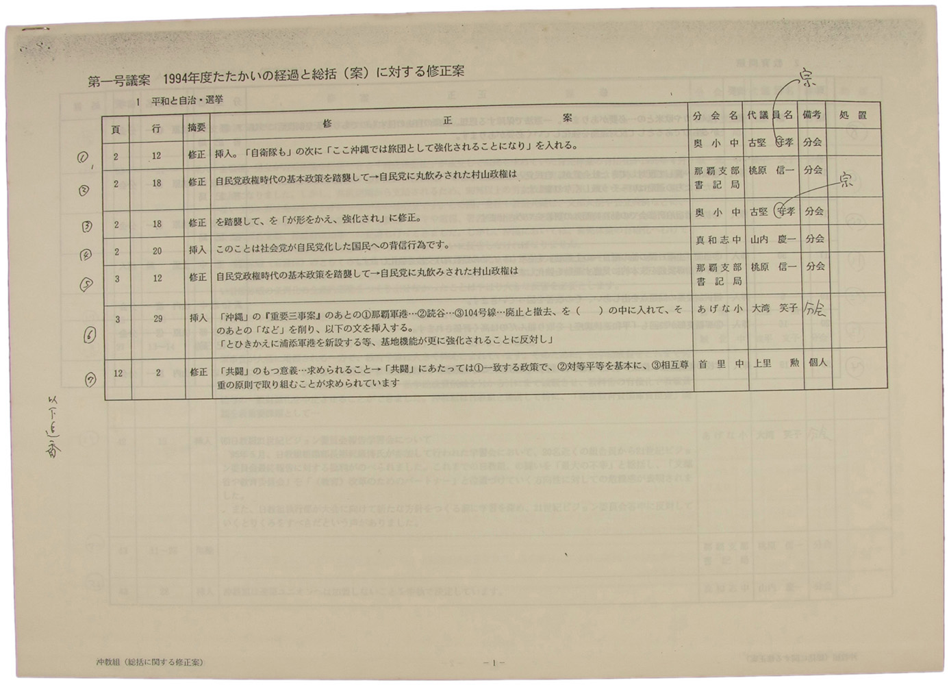 第一号議案 1994年度たたかいの経過と総括(案)に対する修正案