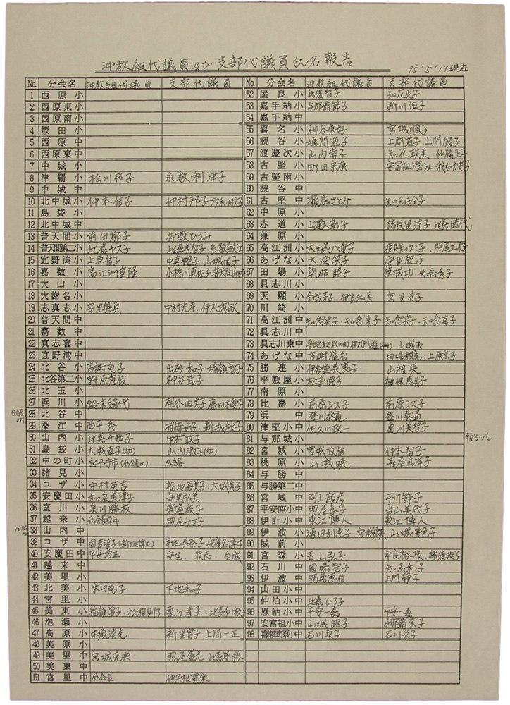 沖教組代議員及び支部代議員氏名報告