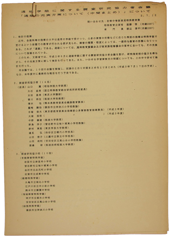 通級学級に関する調査研究協力者会議 3.7.12
