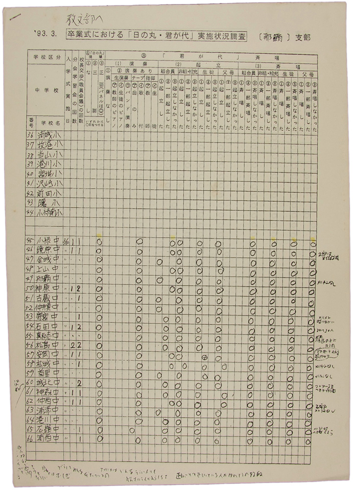 > 93.3. 卒業式における「日の丸・君が代」実施状況調査