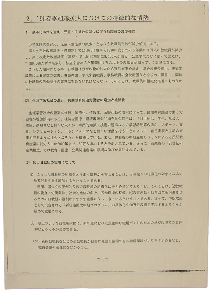 全国代表者会議要項 '96春季組織拡大にむけての特徴的な情勢