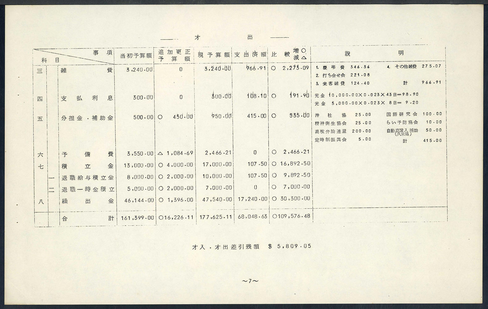 1967年度 上半期決算書