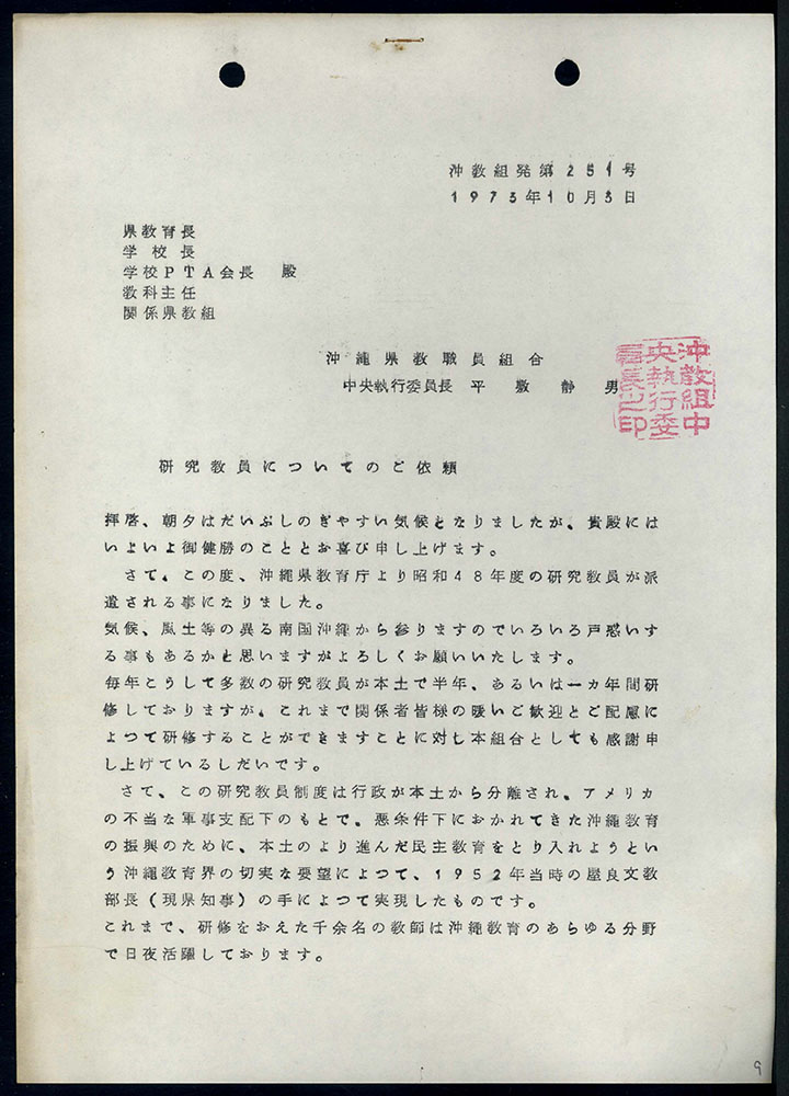 読谷村教育委員会が保有する沖縄戦後教育史・