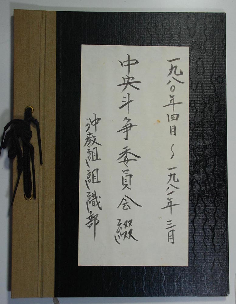 【表装】表紙は黒表紙に筆ペン字で「一九八〇年四月~一九八一年三月 中央斗争委員会綴 沖教組組織部」とある。左紐綴じ。【法量】縦横:×cm、総頁数【内容】 |