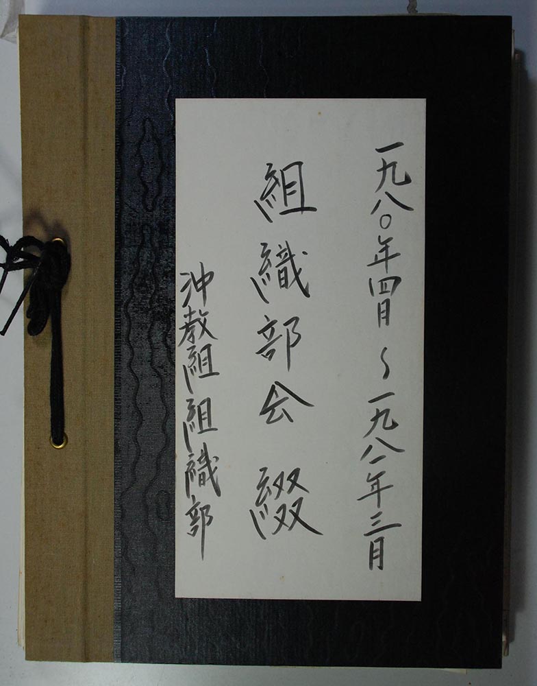 【表装】表紙は黒表紙に筆ペン字で「一九八〇年四月~一九八一年三月 組織部会綴 沖教組組織部」とある。左紐綴じ。【法量】縦横:×cm、総頁数【内容】
