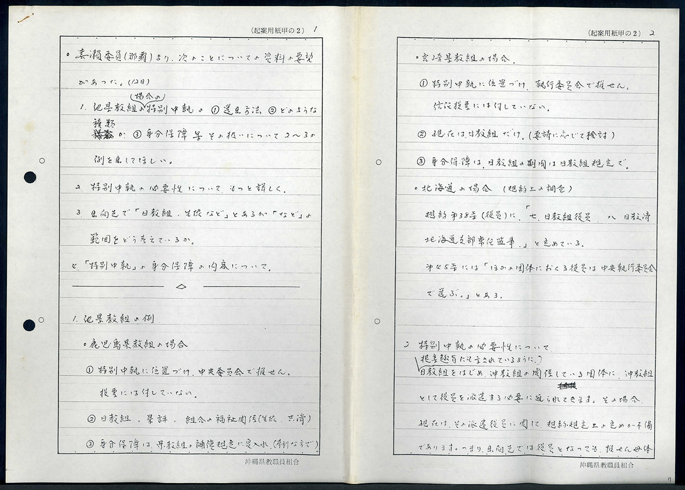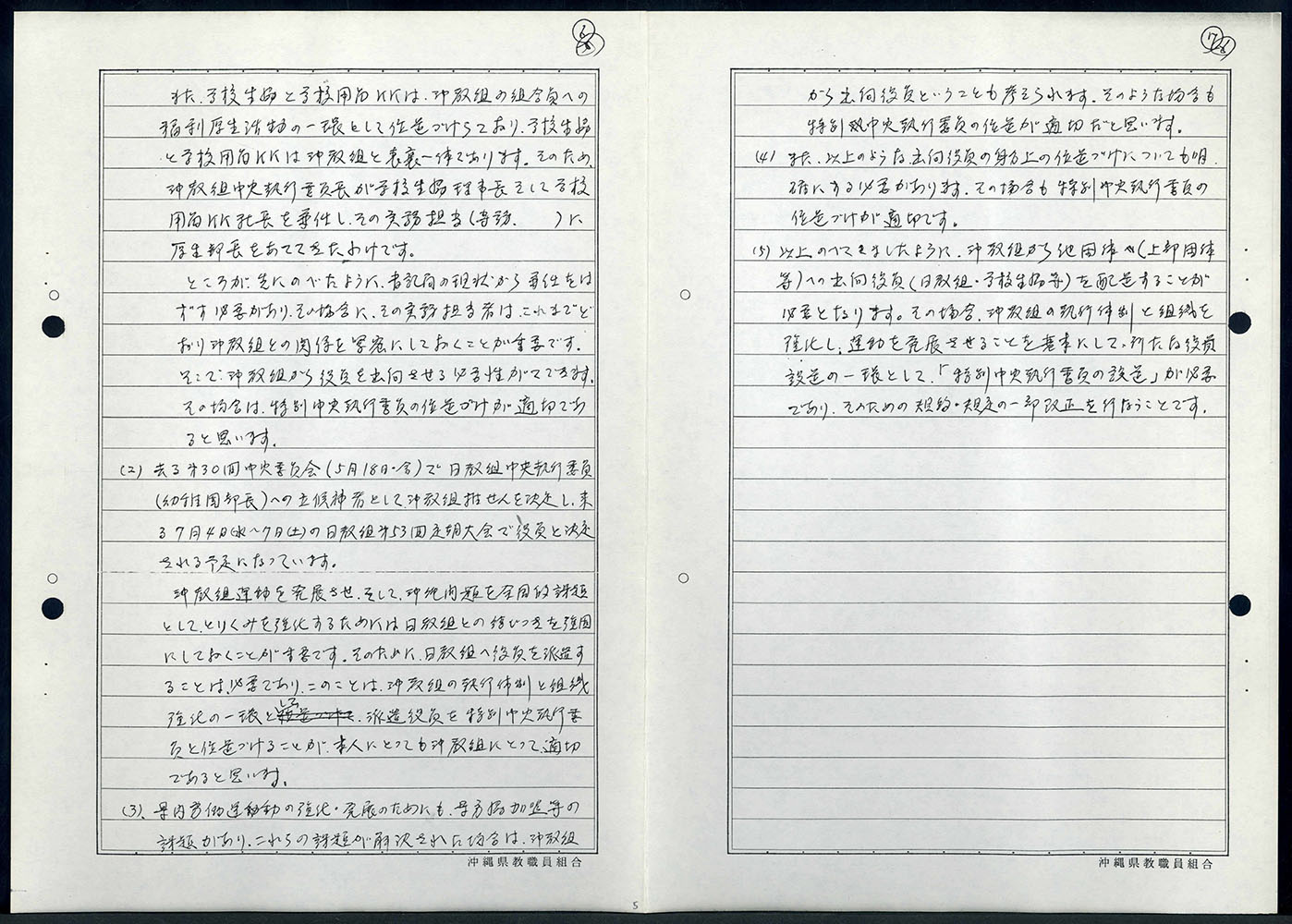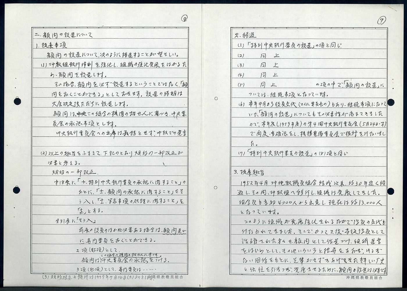 【表装】表紙は黒表紙にペン字で「一九七九年四月以降 組織機構整備委員会 沖教組組織部」とある。左紐綴じ。【法量】縦横:×cm、総頁数【内容】