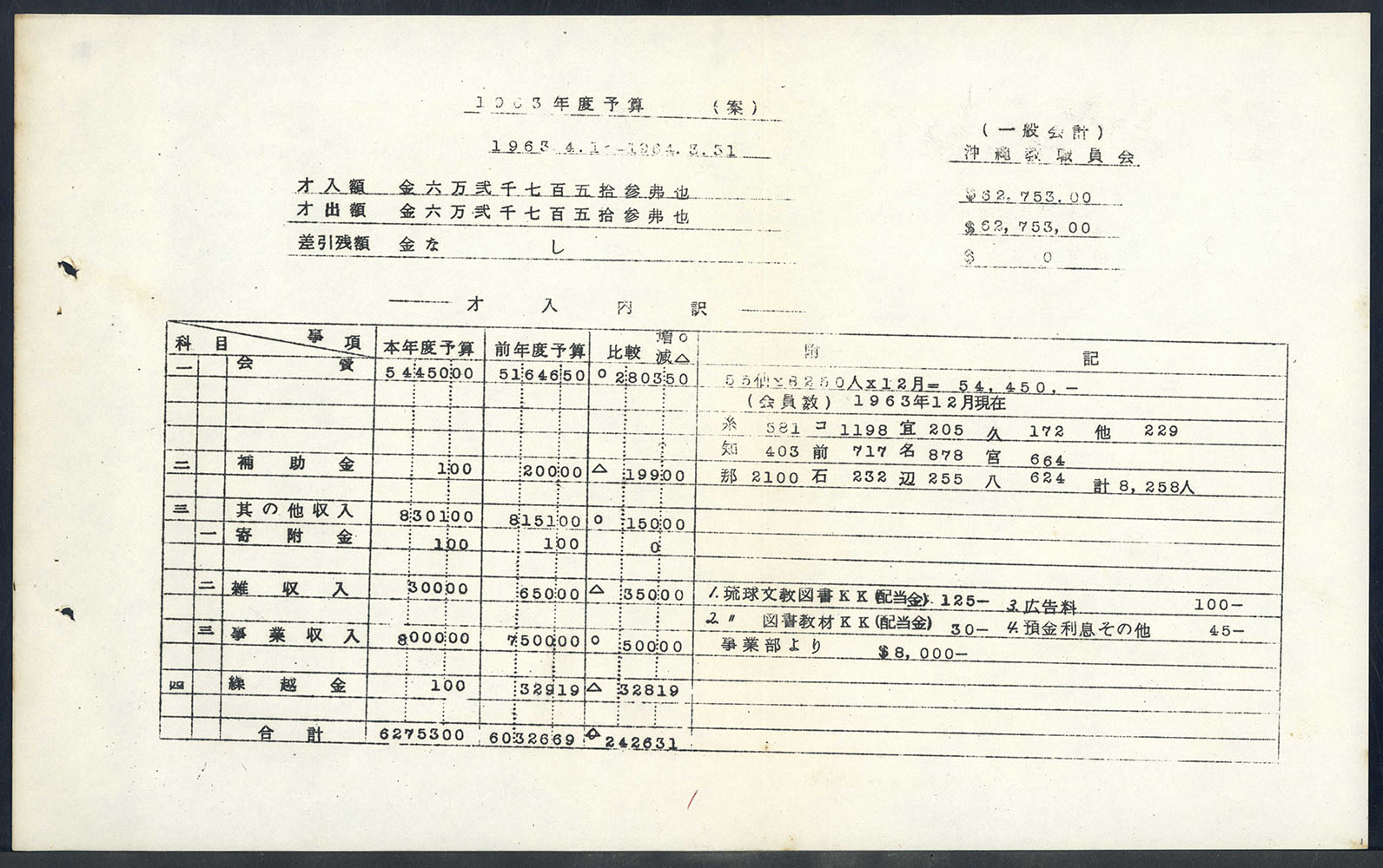 > 予算資料 (1963年度)