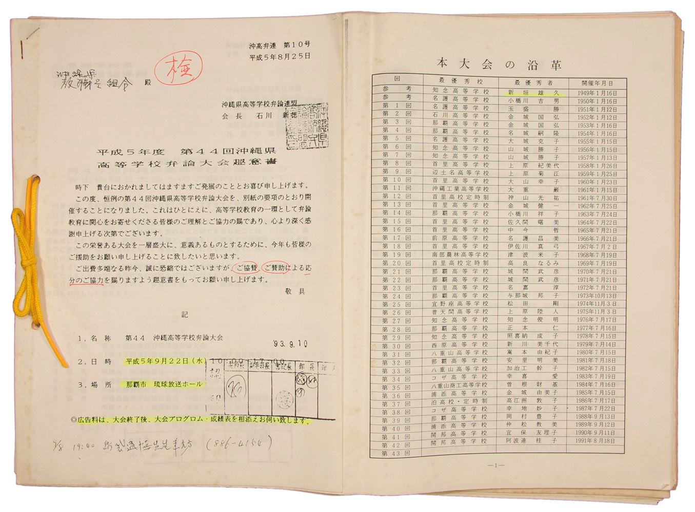 平成5年度 第44回沖縄県 高等学校弁論大会趣意書