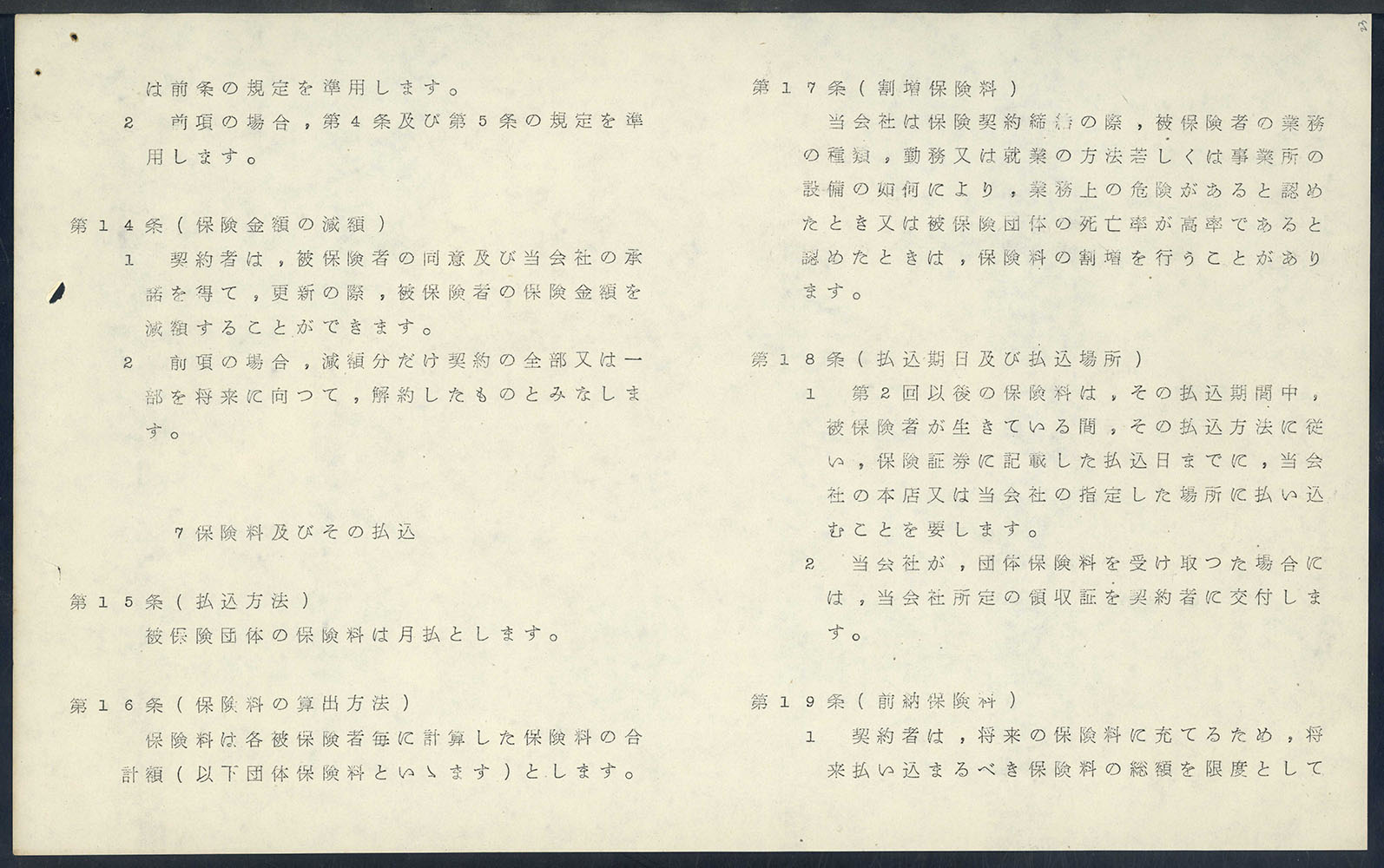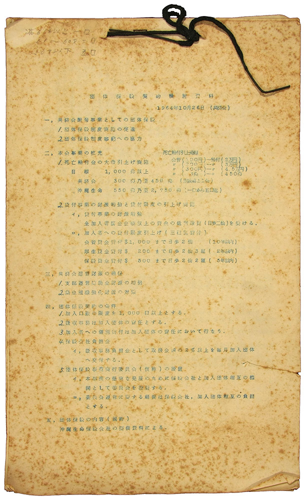 > 団体保険契約検討資料 1964年10月26日(共済会)