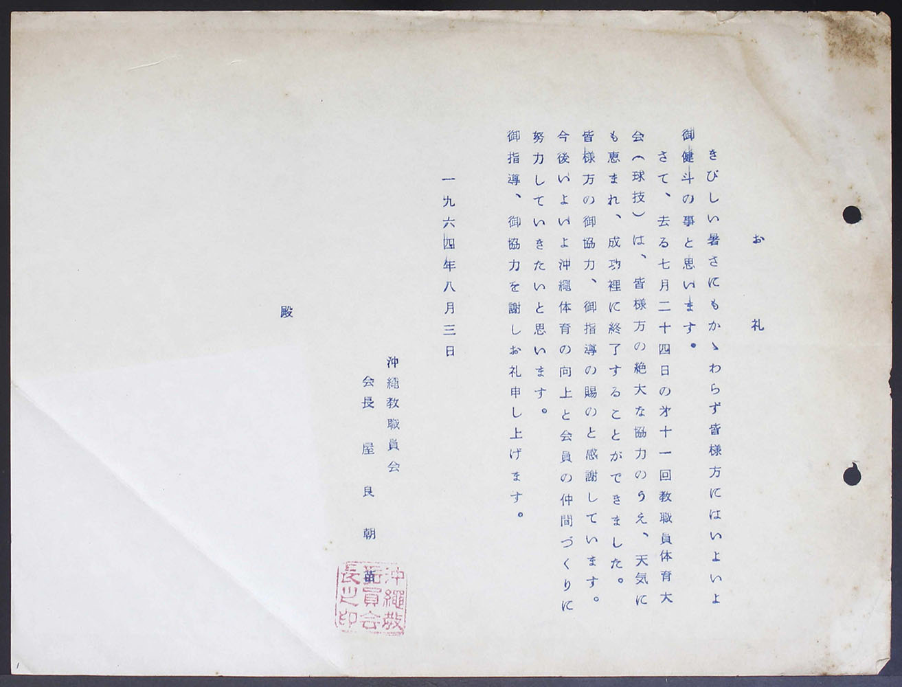 1964年7月24日 第十一回教職員体育大会綴
