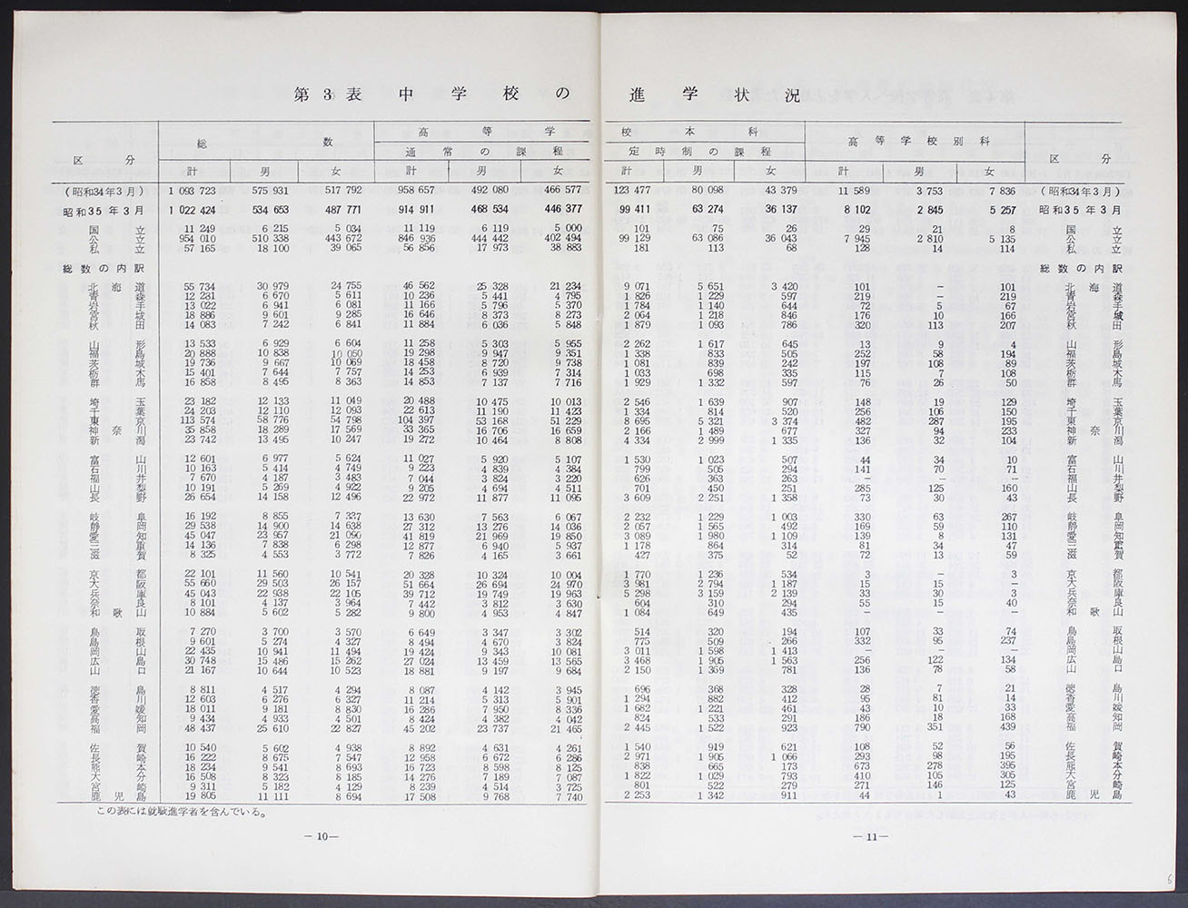 文部統計速報 学校調査 No.93 指定統計第13号 学校基本調査 昭和35年度