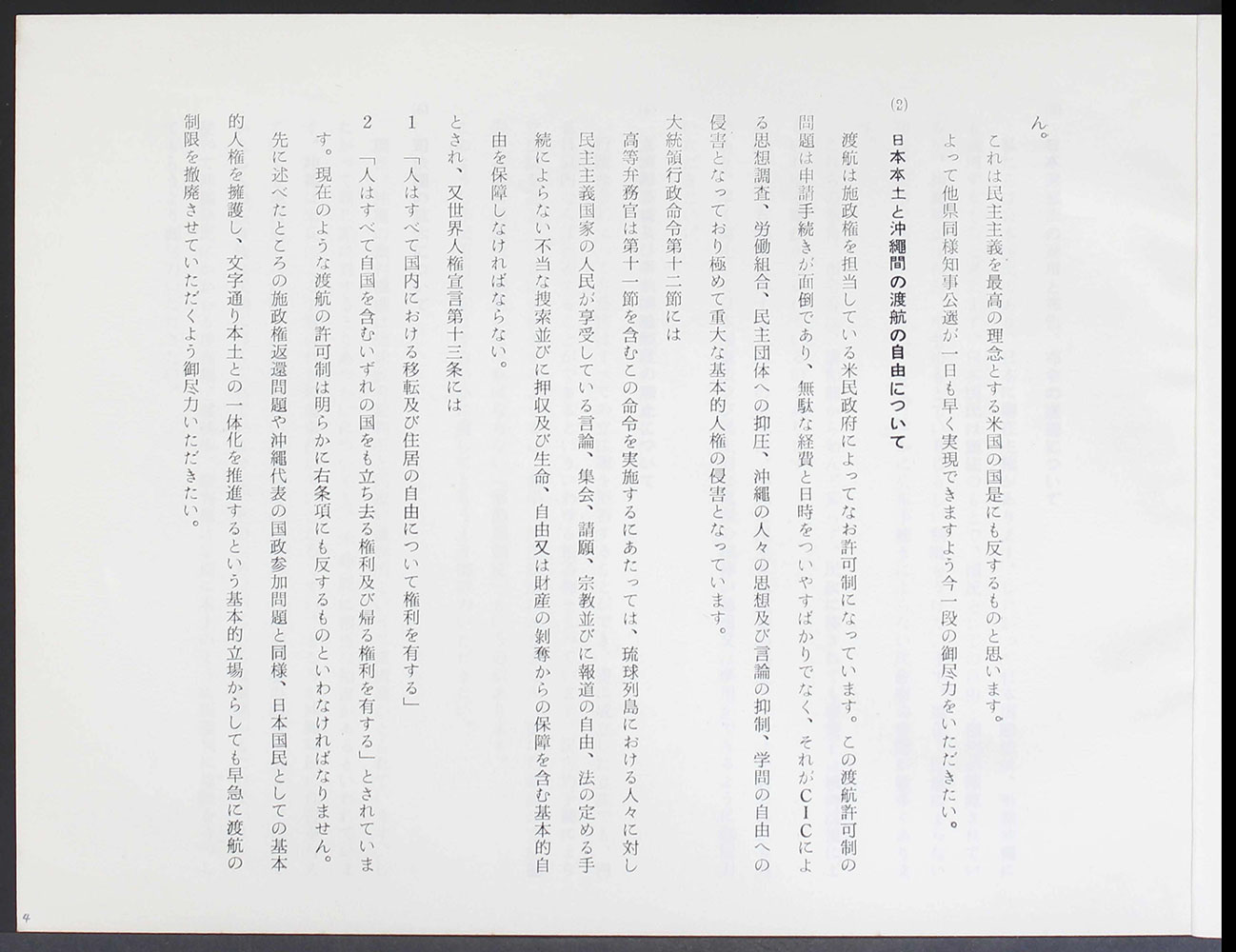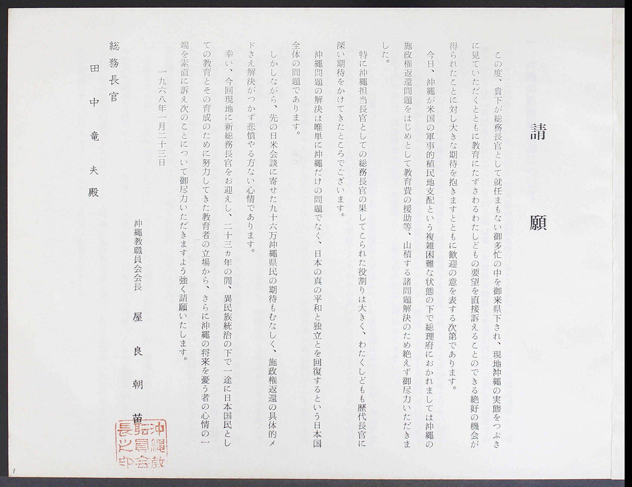 > 一九六八年一月二十三日 田中総務長官への請願