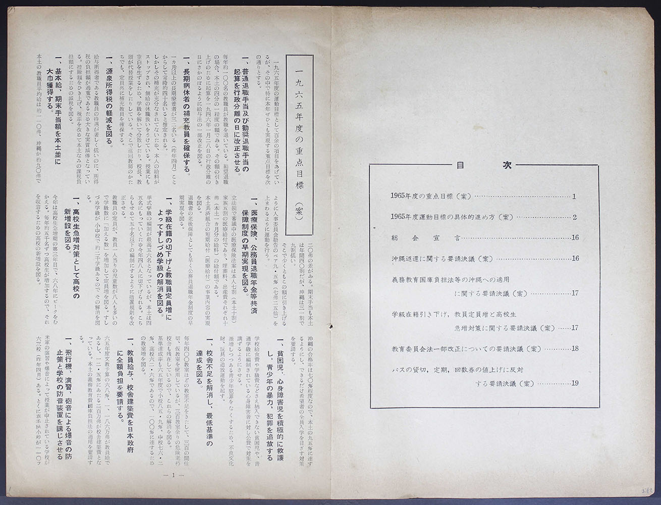 1965年度 運動目標の具体的進め方 総会宣言並びに要請決議