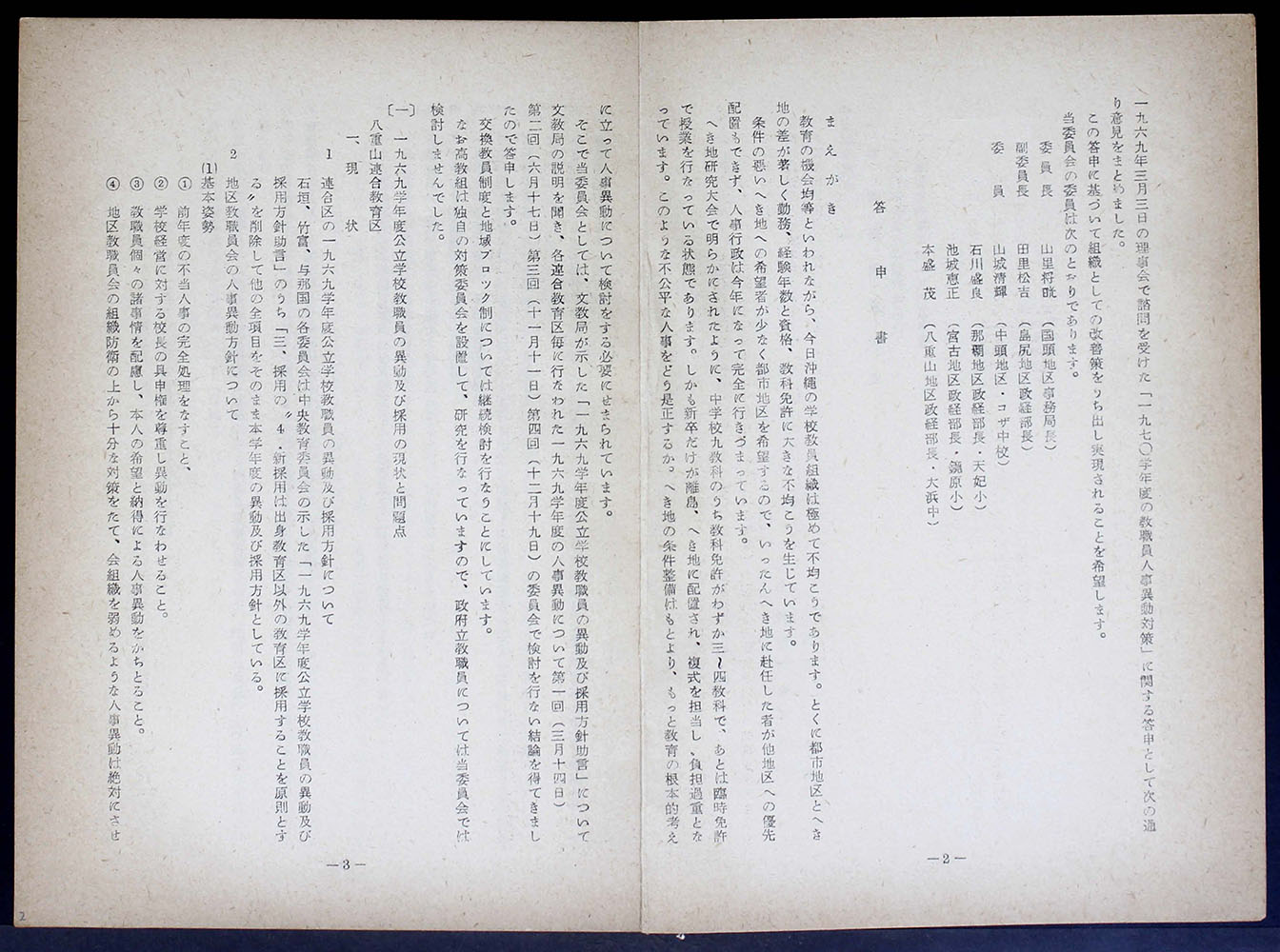 > 一九七〇学年度 公立学校教職員人事異動対策についての答申