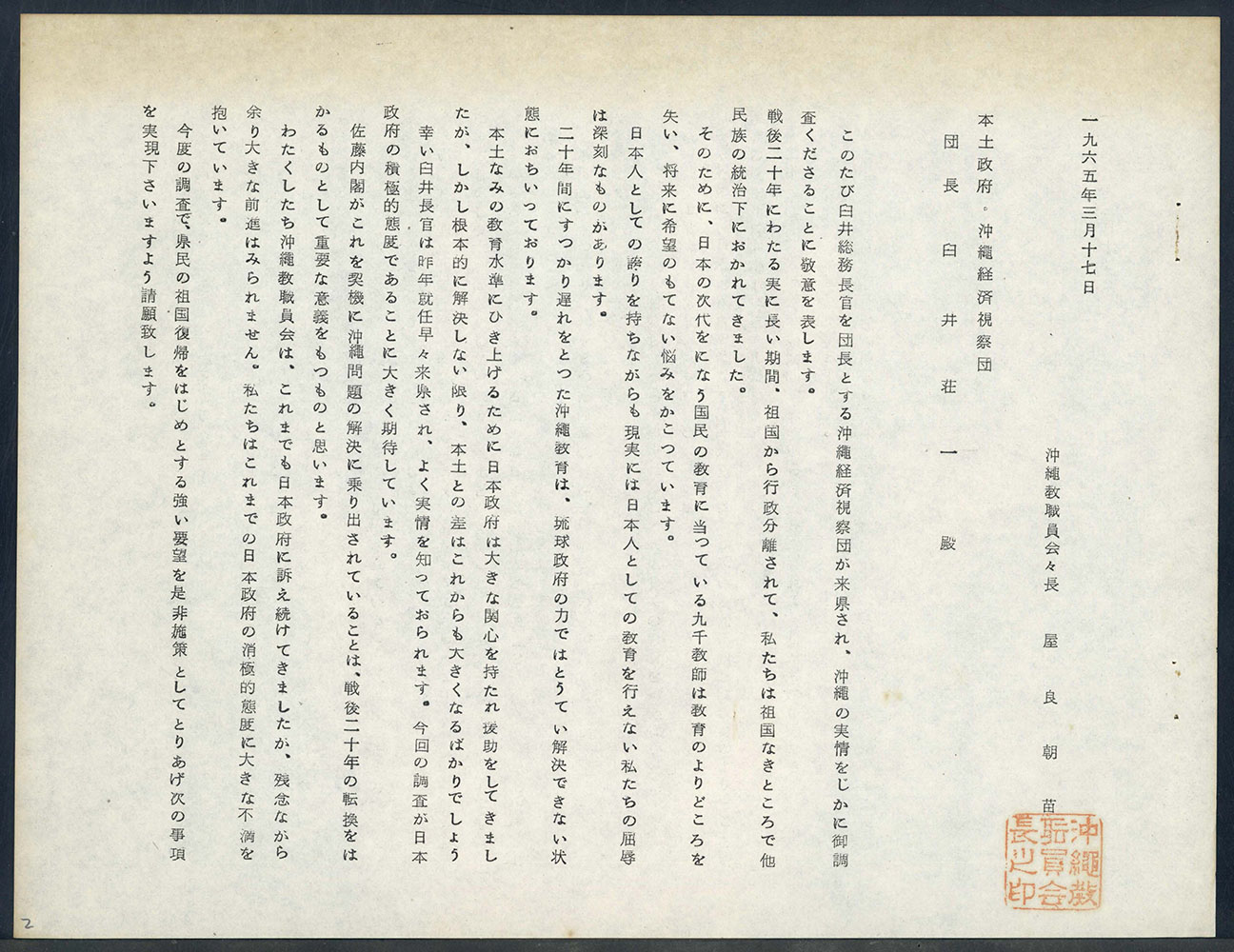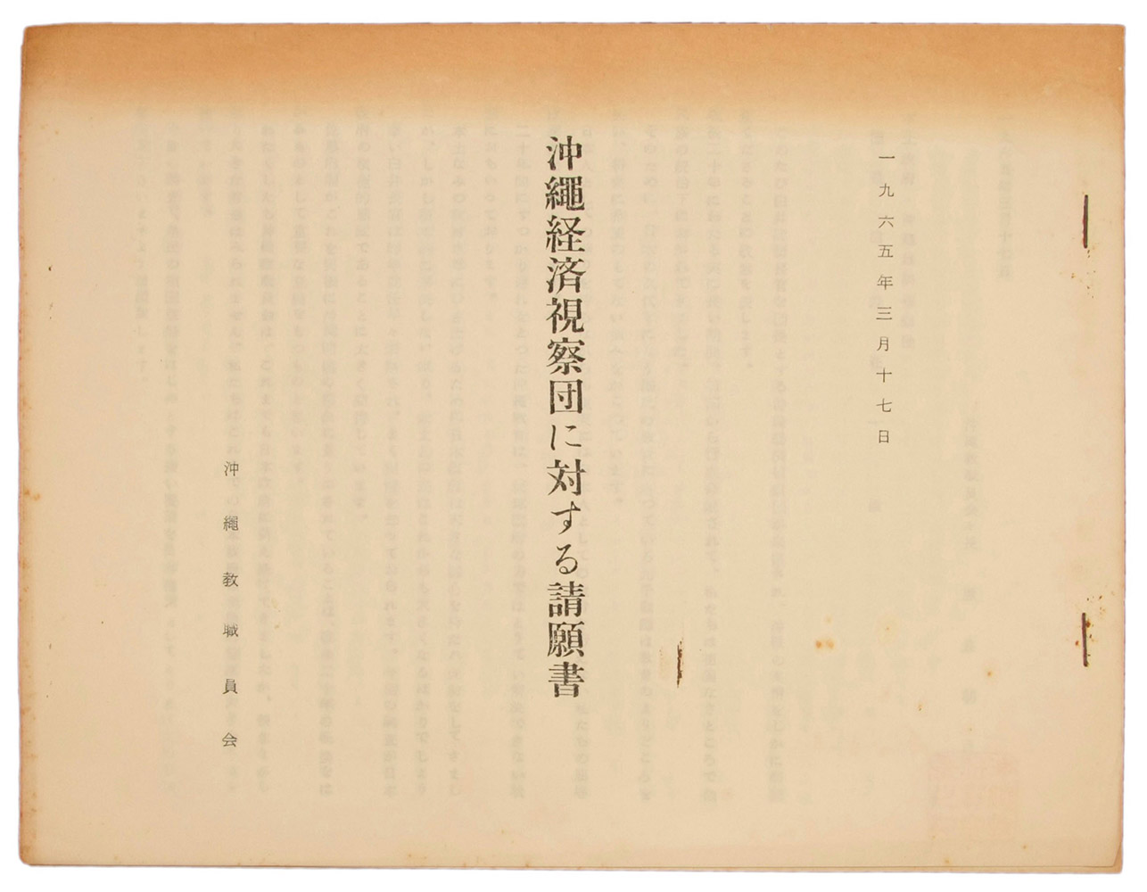 > 一九六五年三月十七日 沖縄県経済視察に対する請願書
