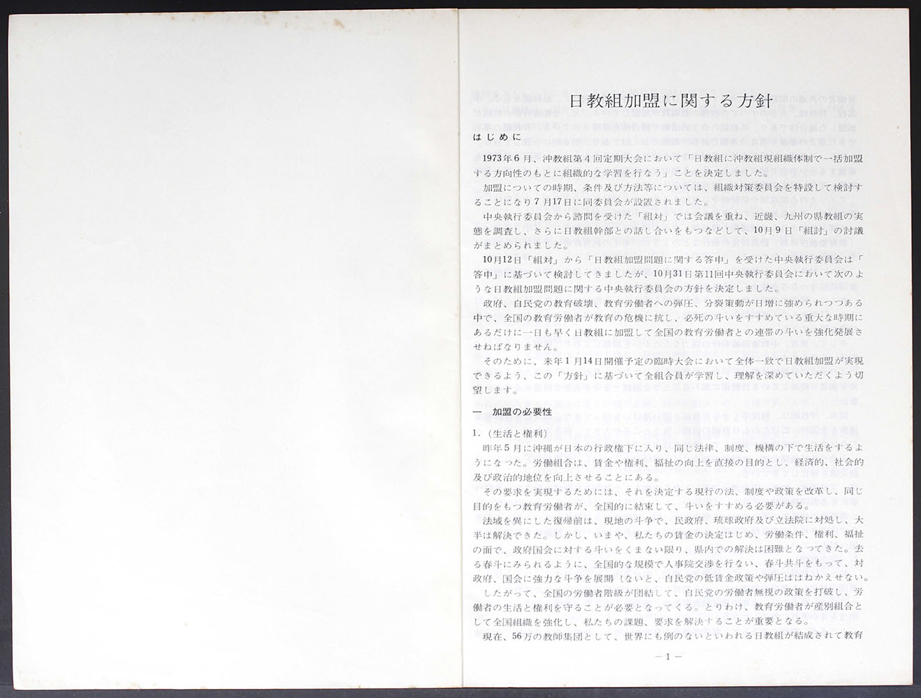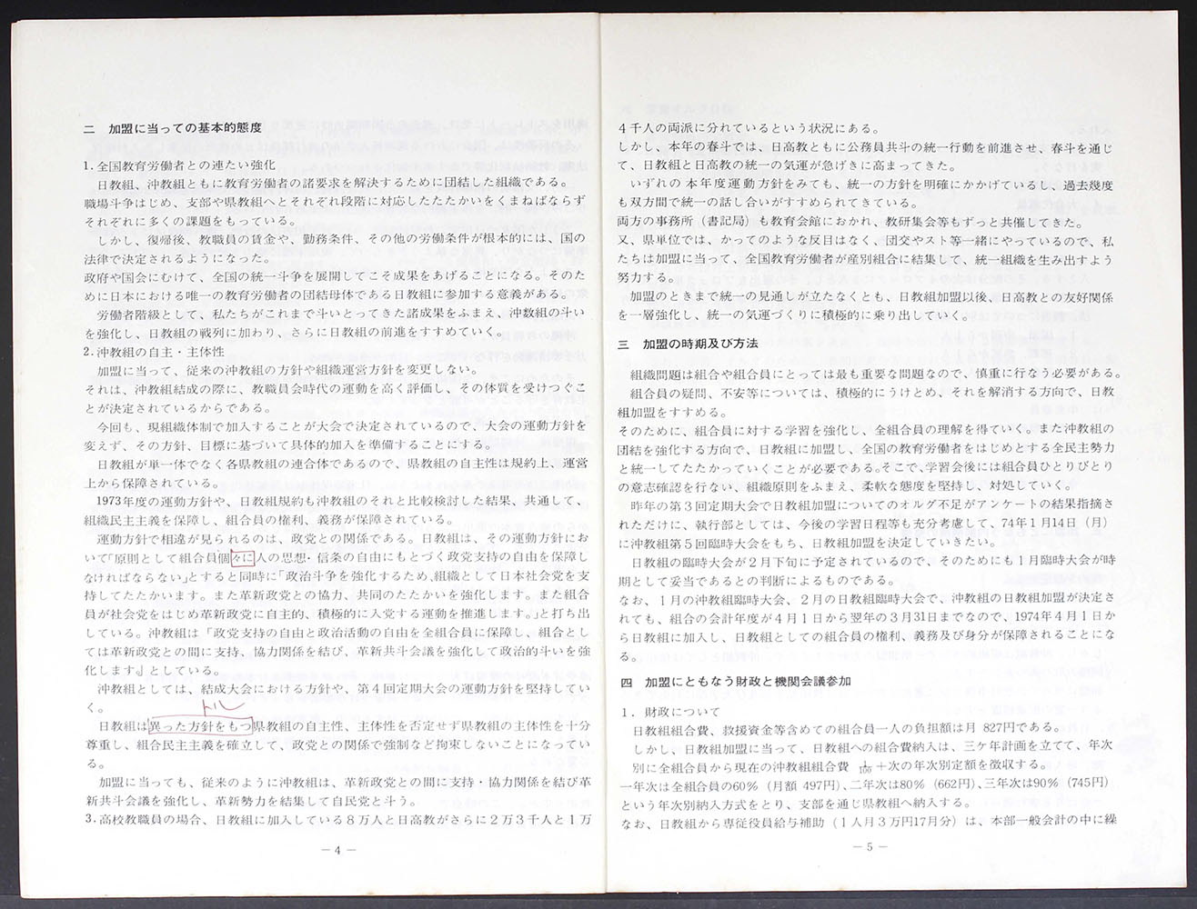 > 日教組加盟に関する方針