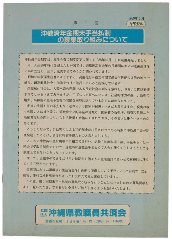 沖教済年金期末手当払制の募集取り組みについて