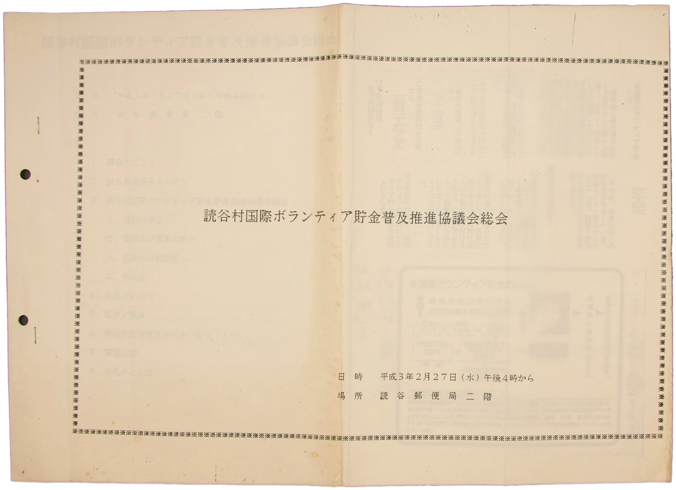 読谷村国際ボランティア貯金普及推進協議会総会 平成3年2月27日