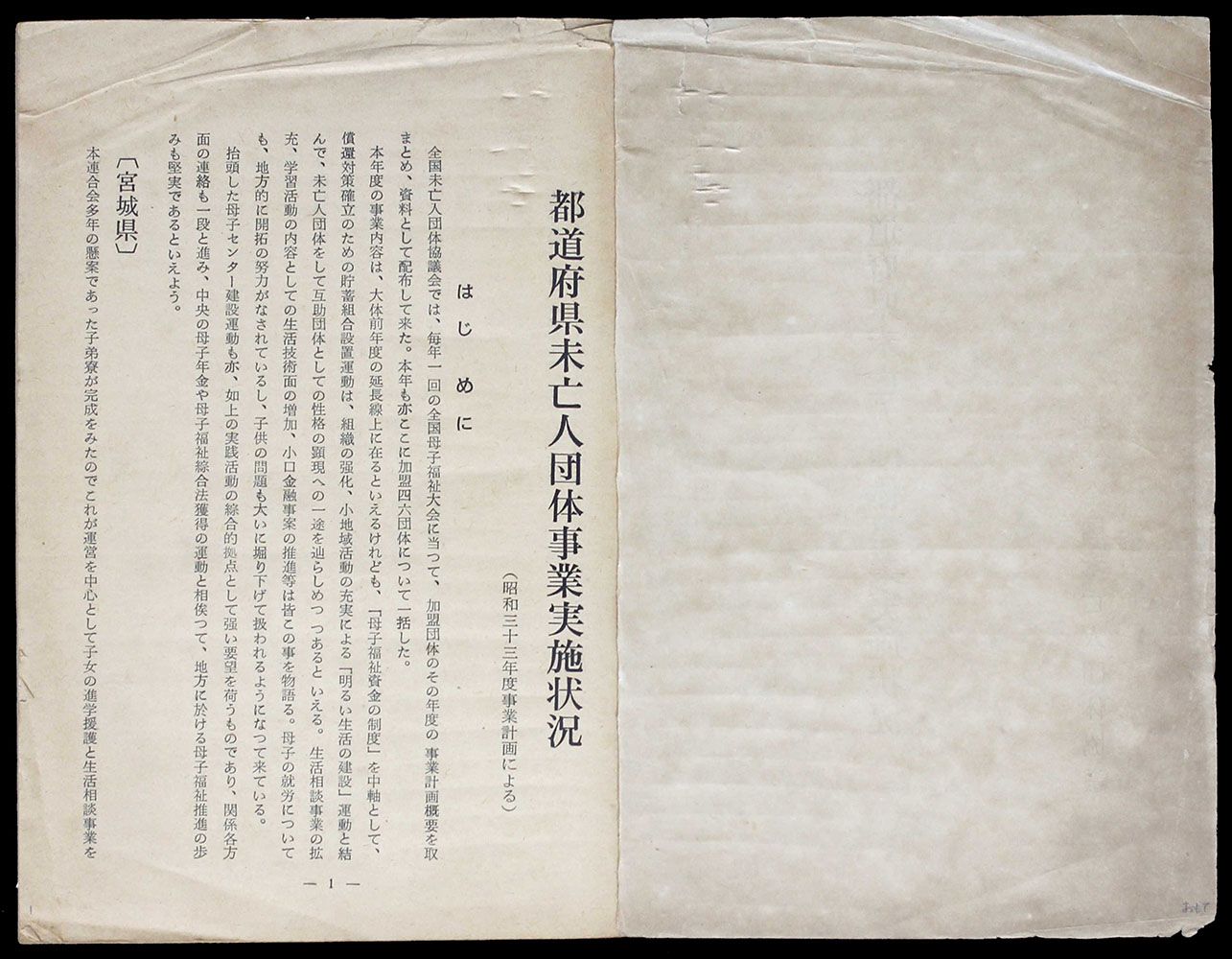 > 昭和三十三年度 都道府県未亡人団体事業実施状況
