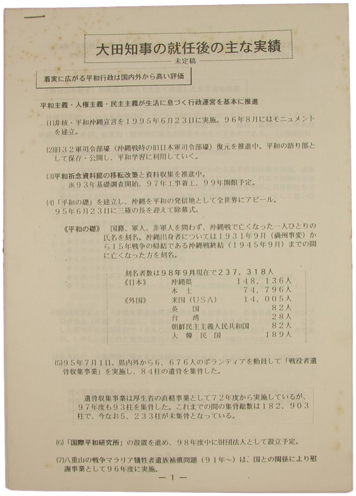 > 大田知事の就任後の主な実績