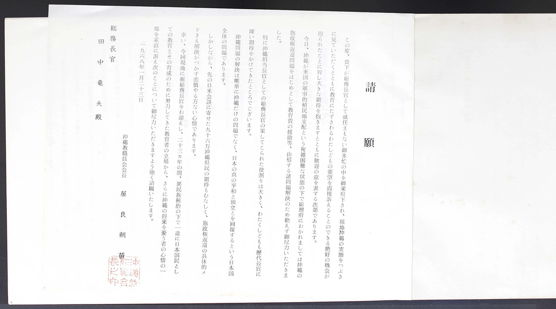 田中総務長官への請願