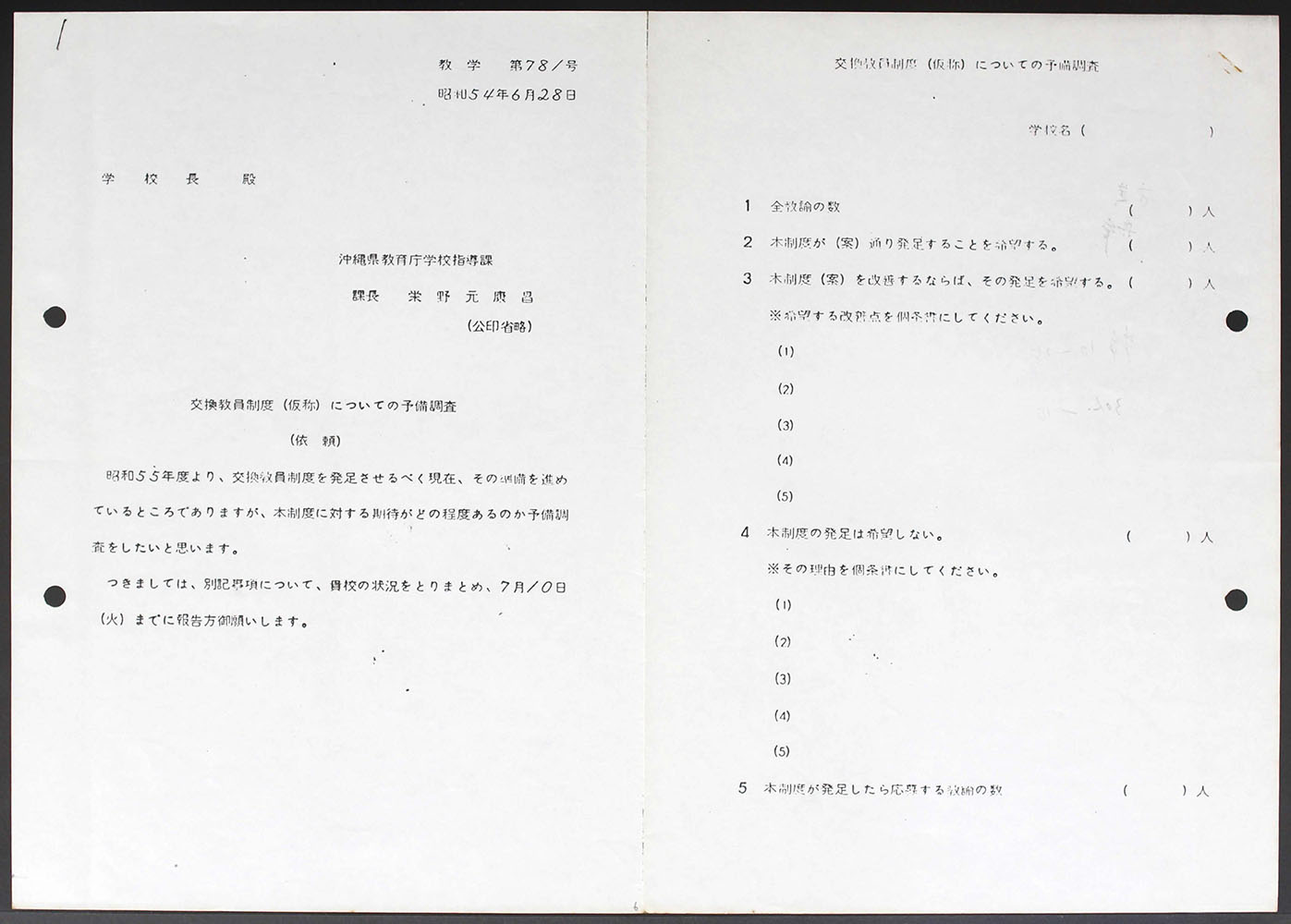 > 交換教員制度に関する資料 他