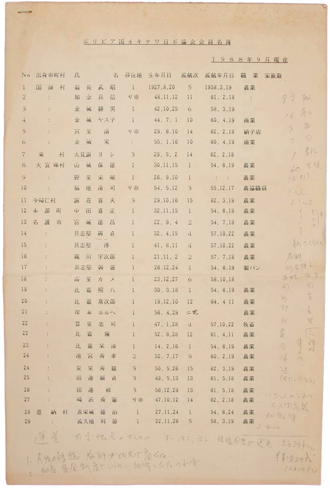 ボリビア国オキナワ日ボ協会会員名簿