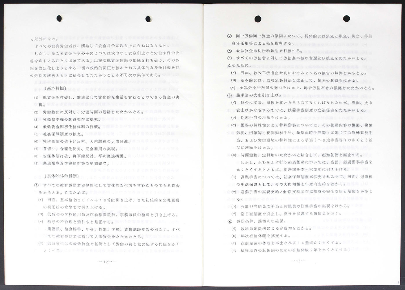 沖縄教職員会賃金綱領 第一草案