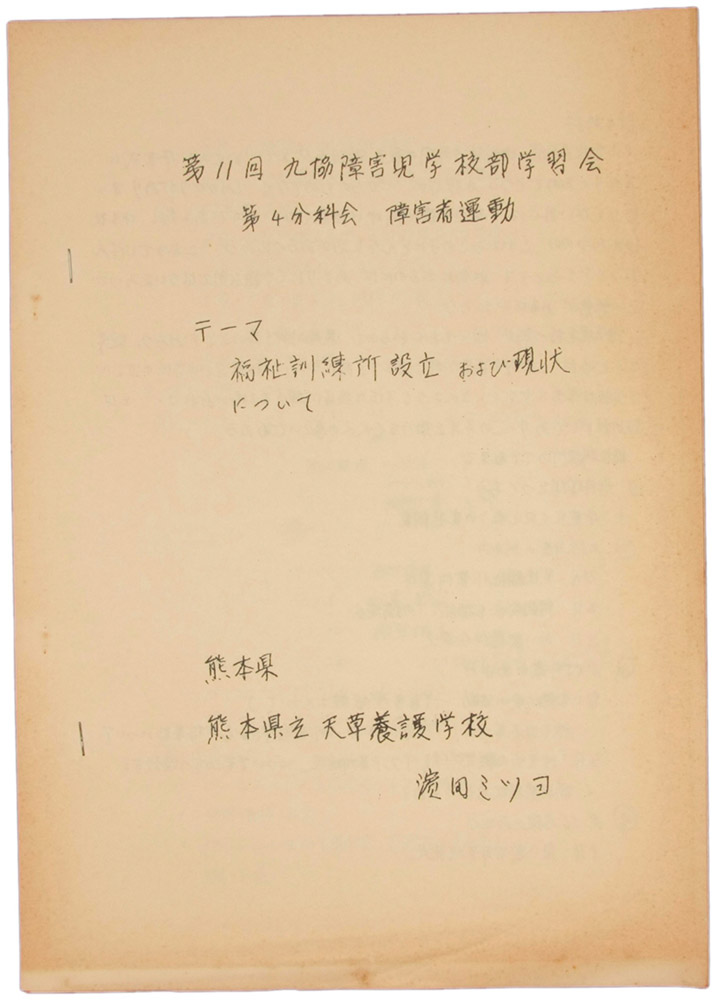第11回 九協障害児学校部学習会 福祉訓練所設立および現状について