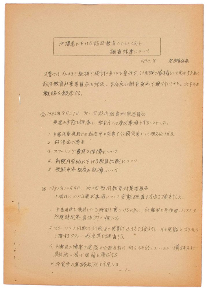 沖縄県における 訪問教育へのとりくみと調査結果について