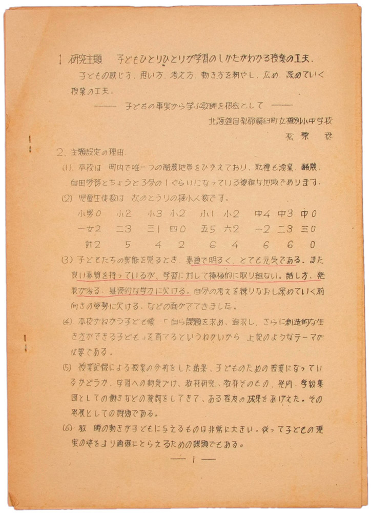 北海道目梨郡羅臼町立植別小中学校:松原 稔