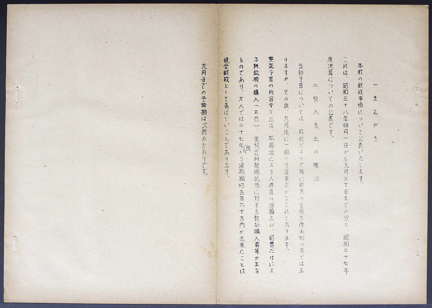 > 昭和三十八年十一月一日 財政事情の公表