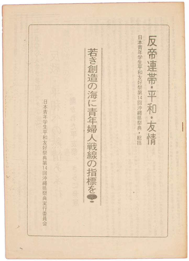 > 日本青年学生平和友好祭第14回沖縄県祭典・総括