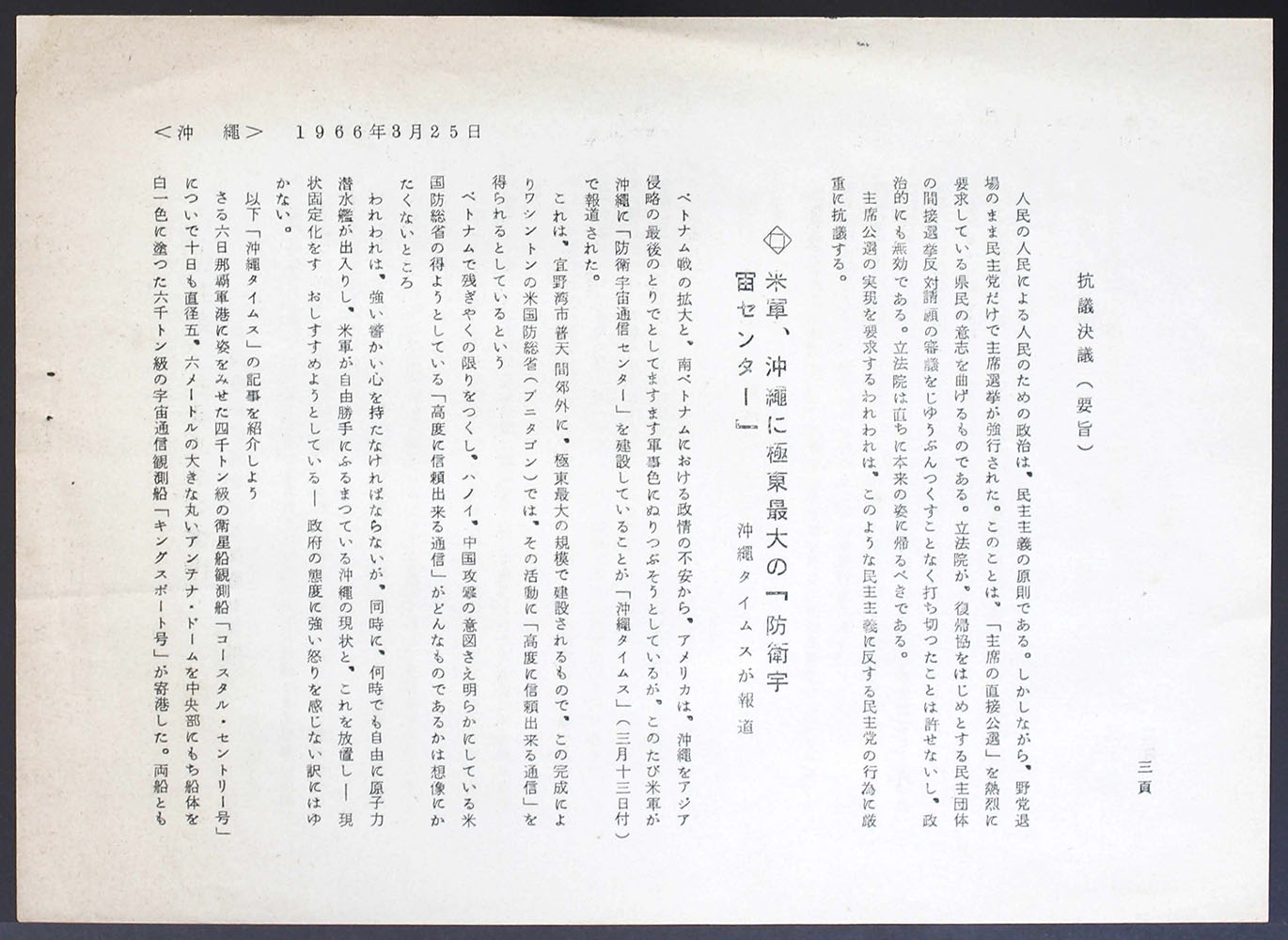 > 一九六六年三月二十五日 六号 沖縄 報道、解説、評論、資料