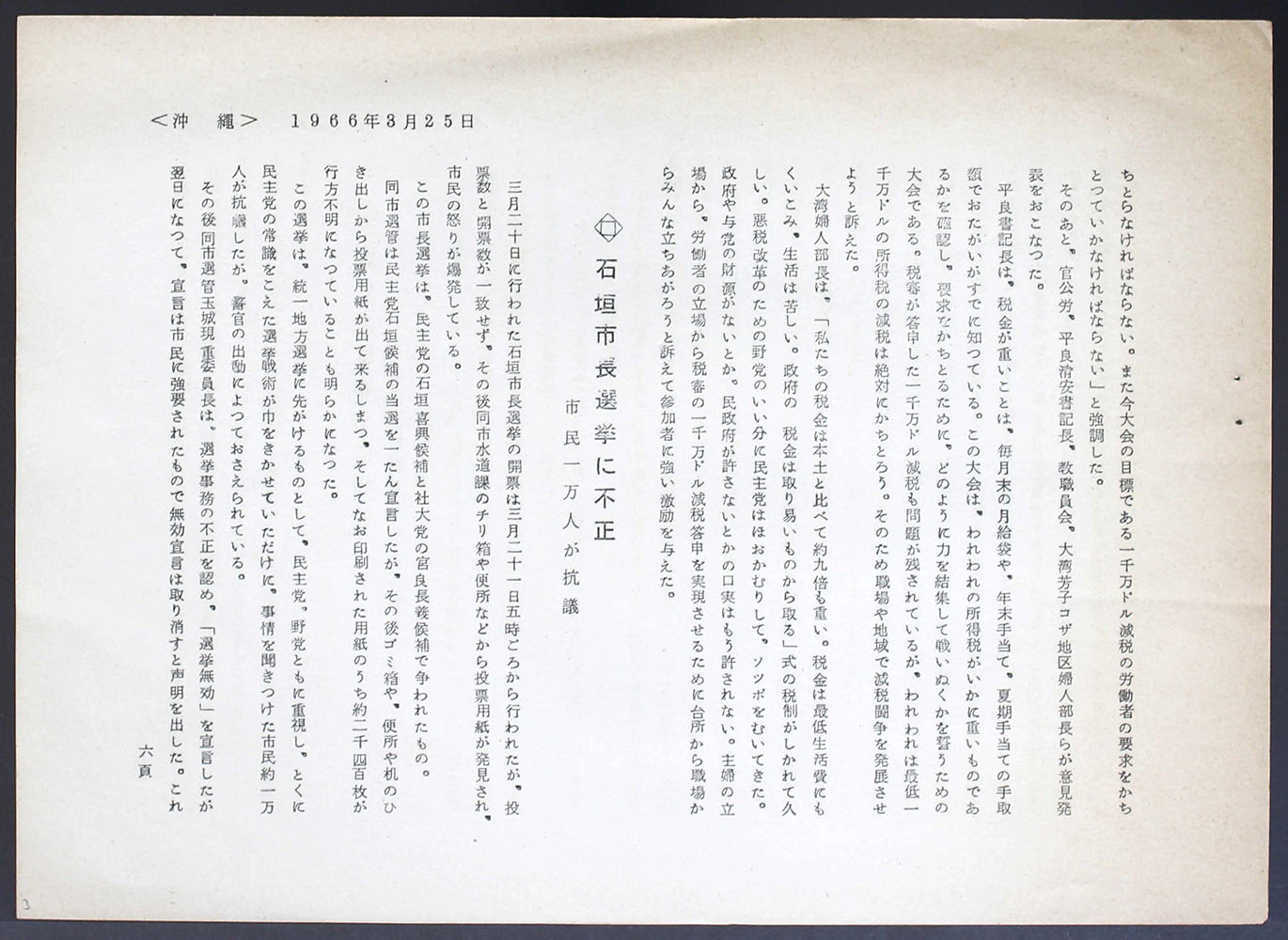 一九六六年三月二十五日 六号 沖縄 報道、解説、評論、資料