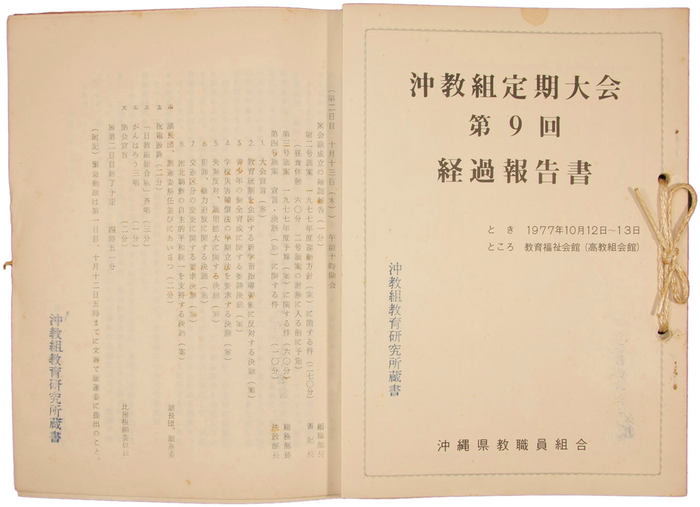 > 沖教組定期大会 第9回 経過報告書 他