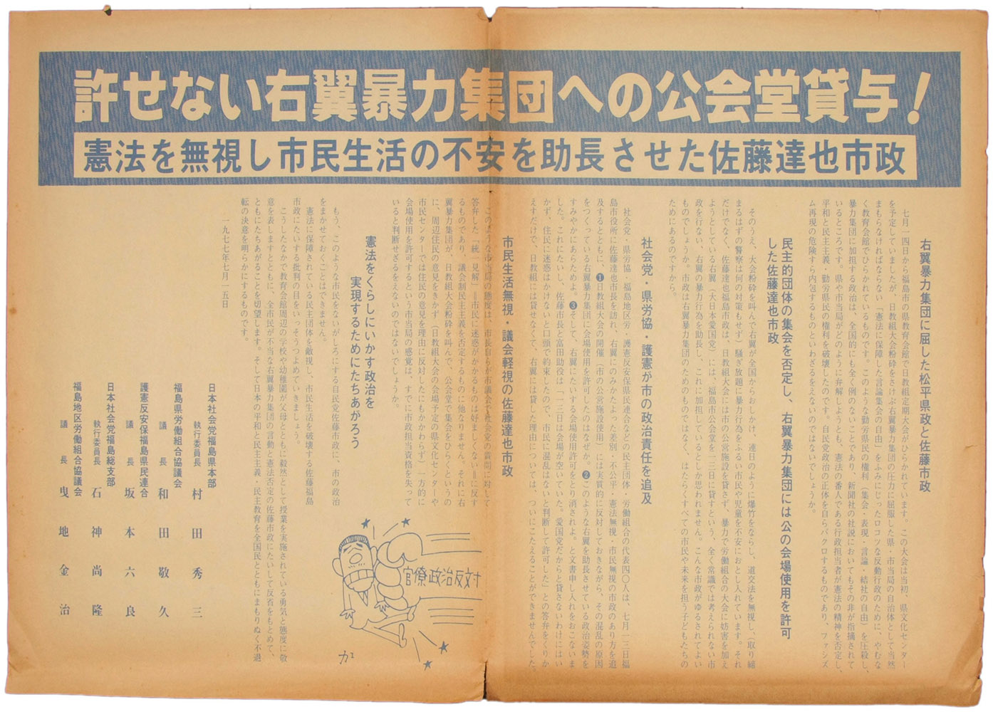 許せない若翼暴力集団への公会堂貸与