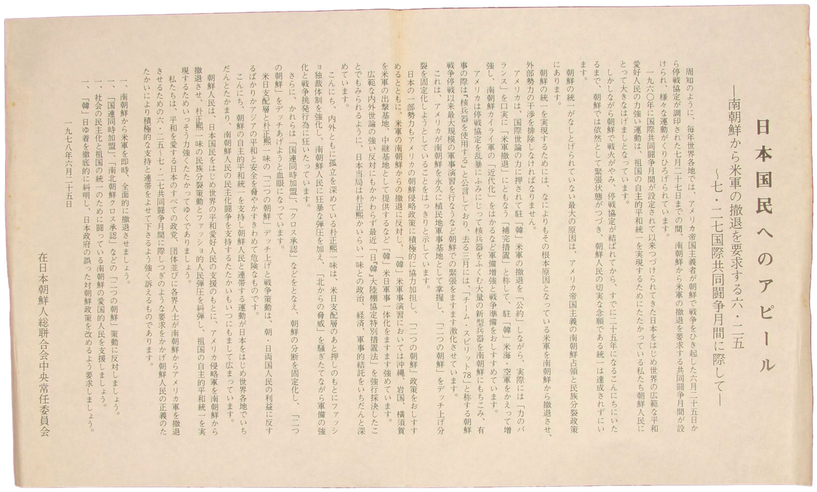 日本国民へのアピール