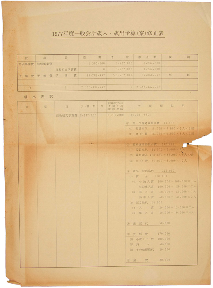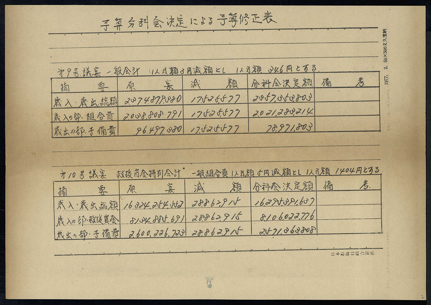 1977年度 一般会計歳入・歳出予算(案)修正表