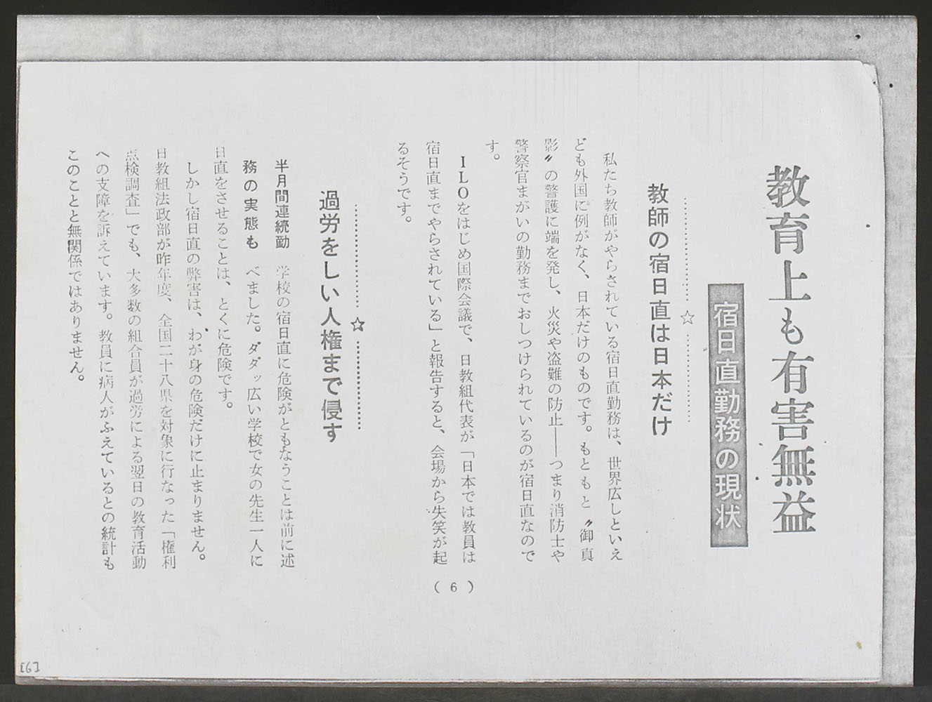 宿日直全廃闘争の現状と今後の課題 他