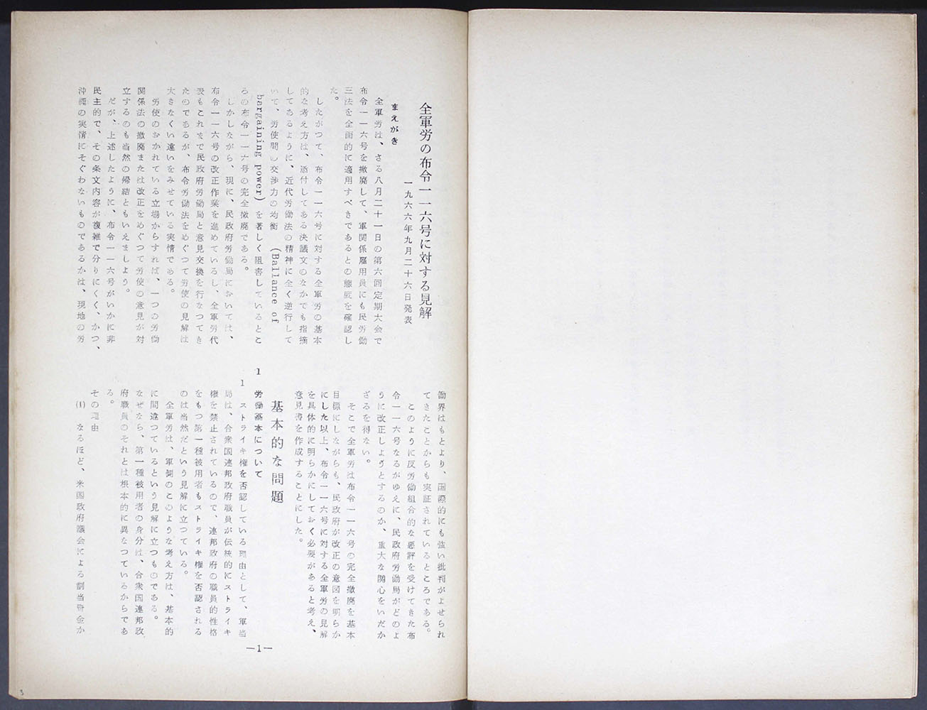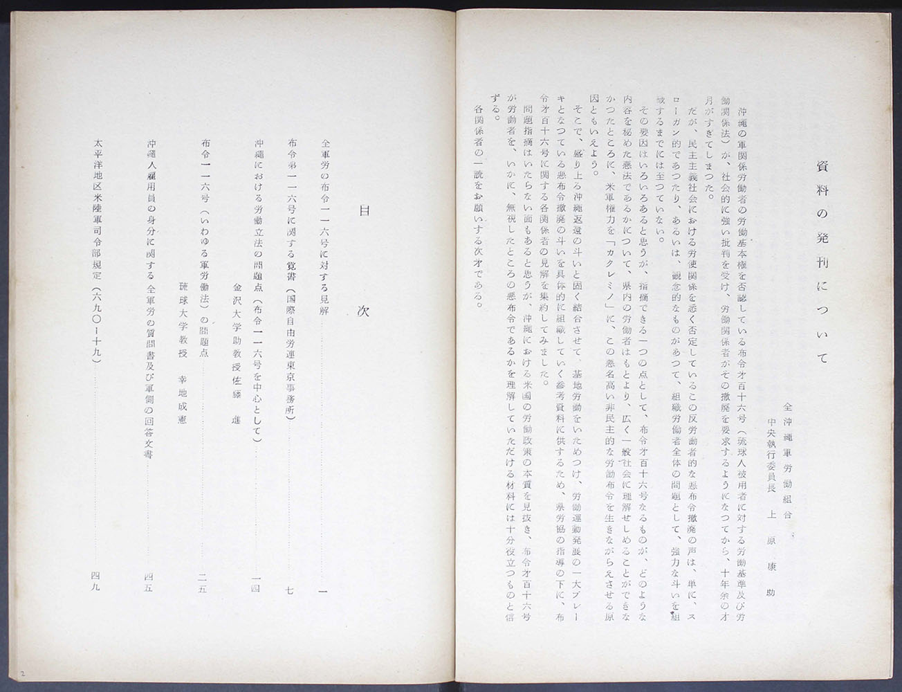 布令一一六に関する問題点及び関係資料