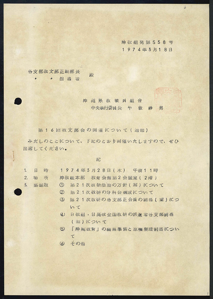 読谷村教育委員会が保有する沖縄戦後教育史・