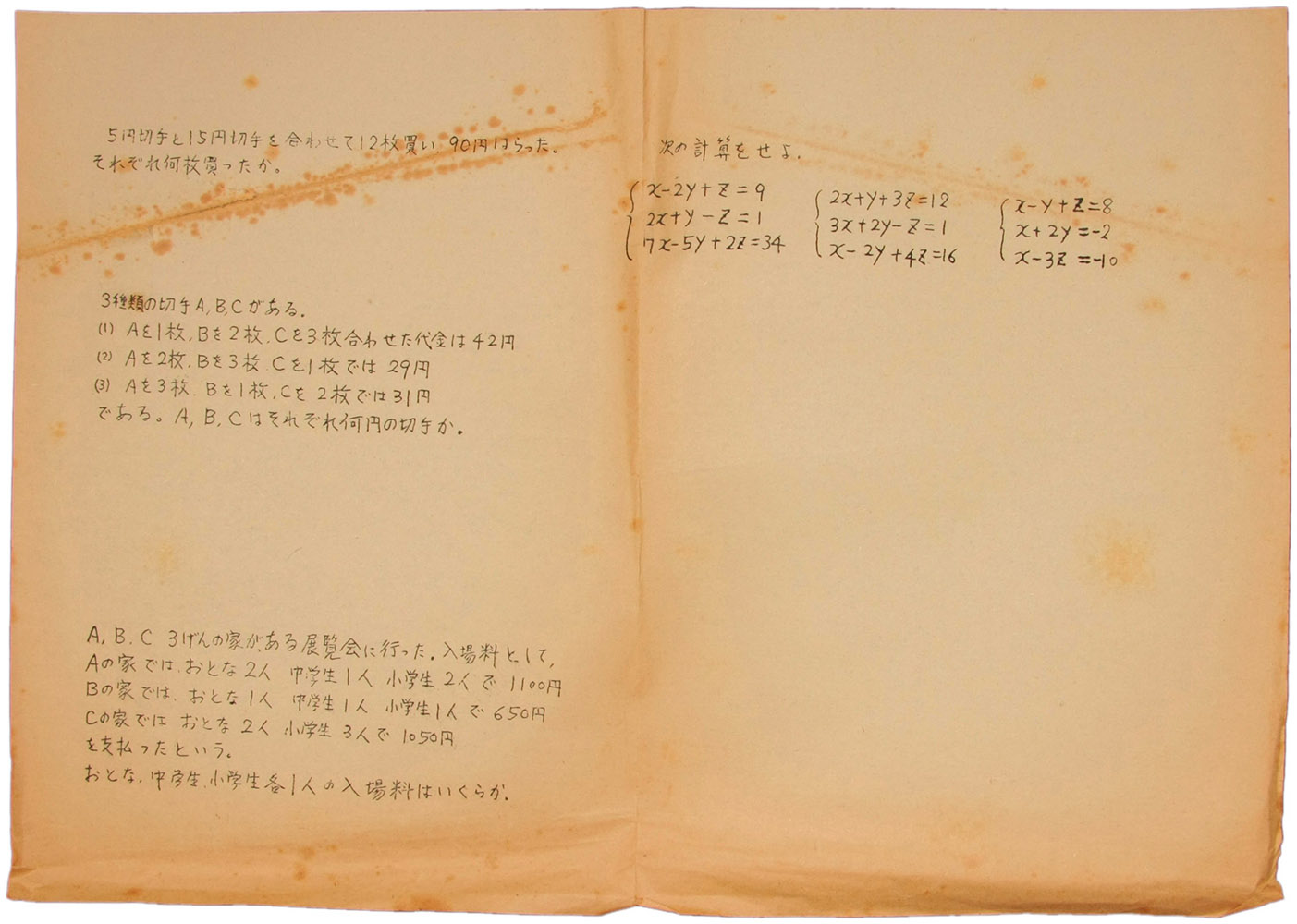 数学問題 5円切手と15円切手を合わせて12枚買い…