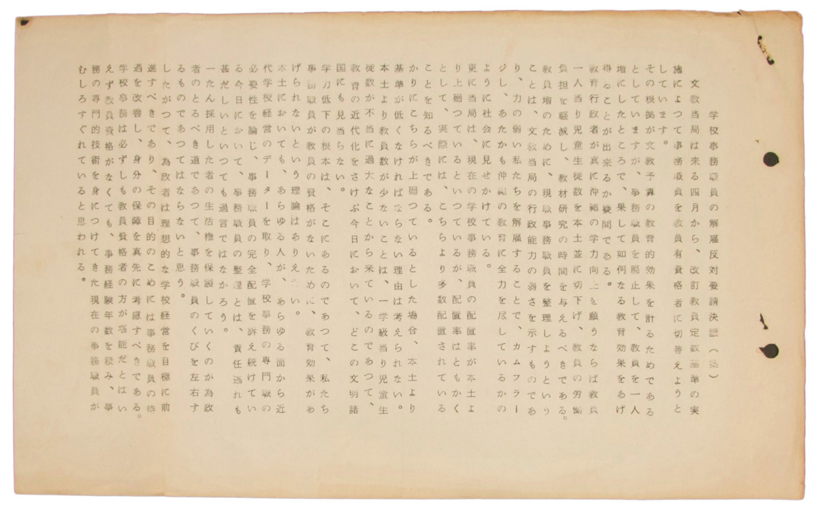 > 学校事務職員の解雇反対要請決議(案)