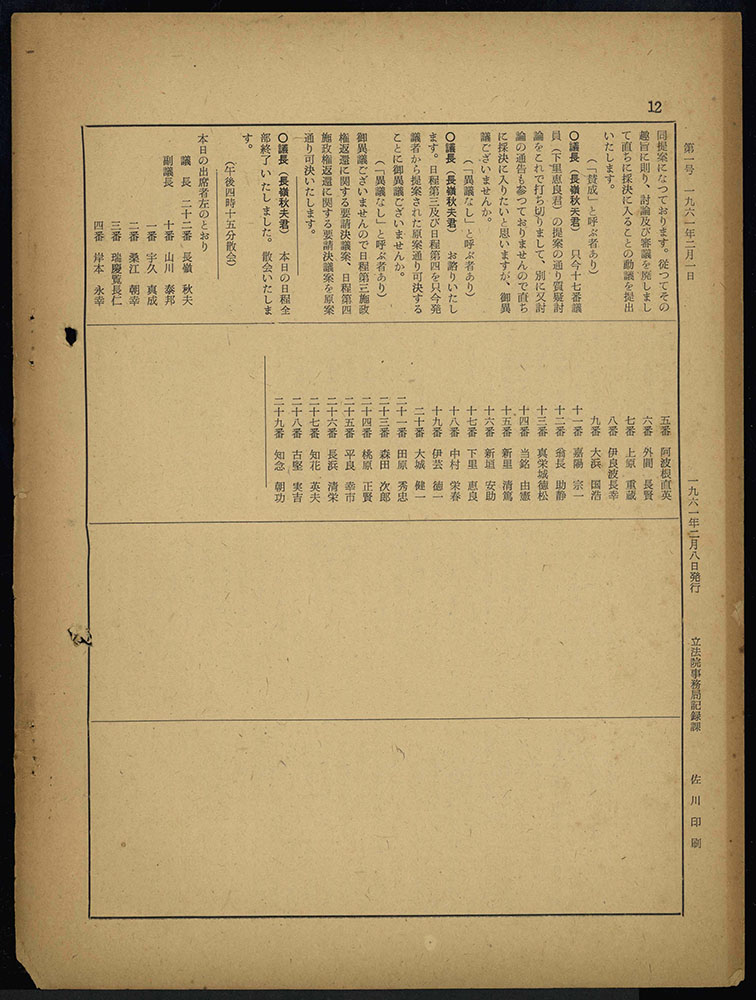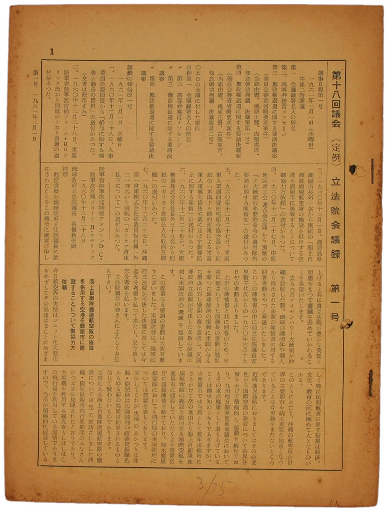 > 第十八回 議会(定例)立法院会議録 第一号