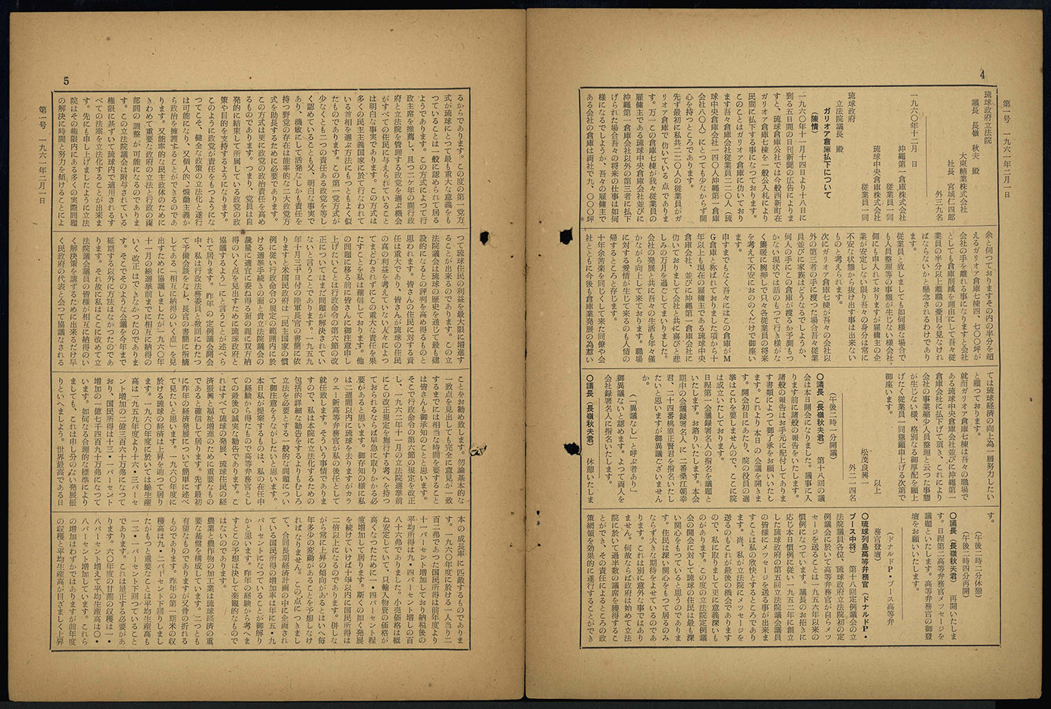 第十八回 議会(定例)立法院会議録 第一号