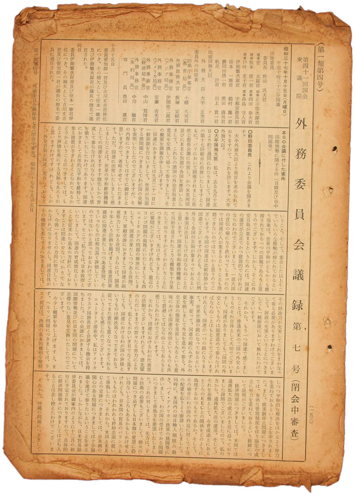 第四十一回 国会衆議院外務委員会議録 第七号(閉会中審査)