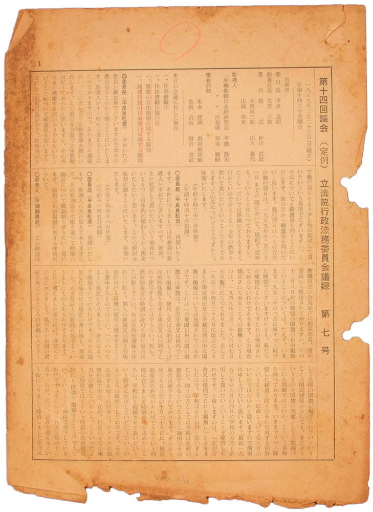 > 第十四回 議会(定例)立法院行政法務委員会議録 第七号