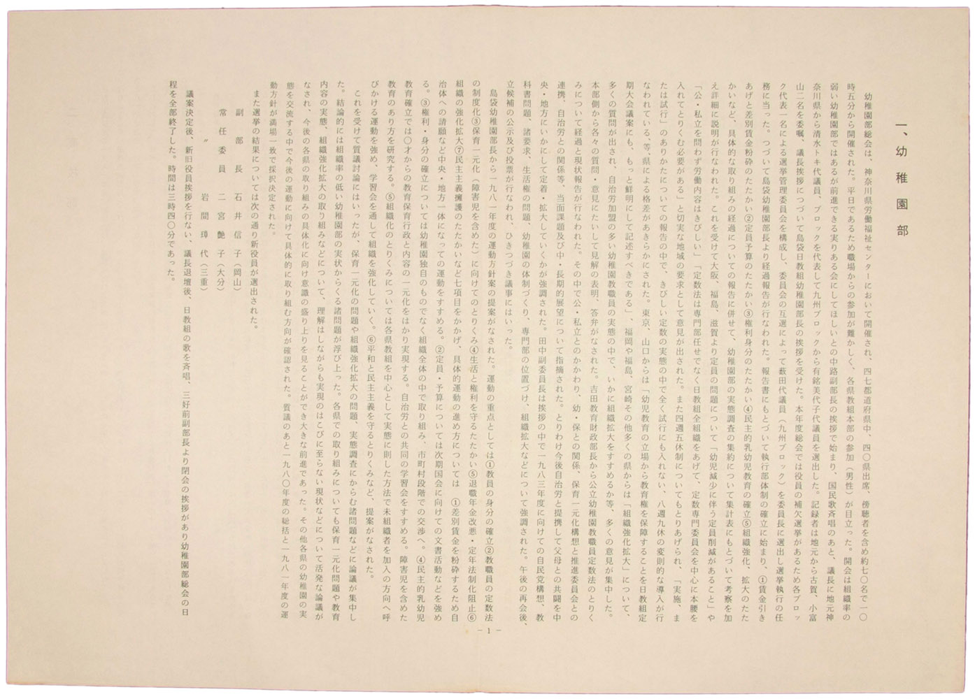 > 一、幼稚園部他